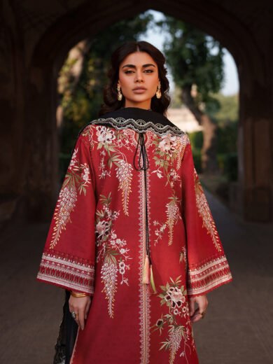 Suroor Eid Collection Embroidered 3-Piece Suit · Lawn & Organza Red Colorway