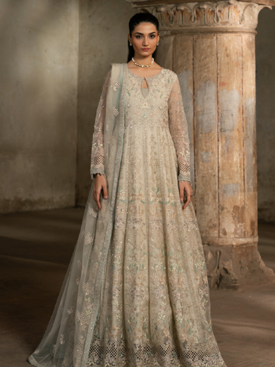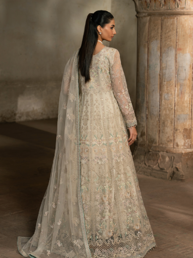 White Dove Embroidered Organza Three-Piece Stitched Collection | Premium Bareeze Net Dupatta & Kalli Set