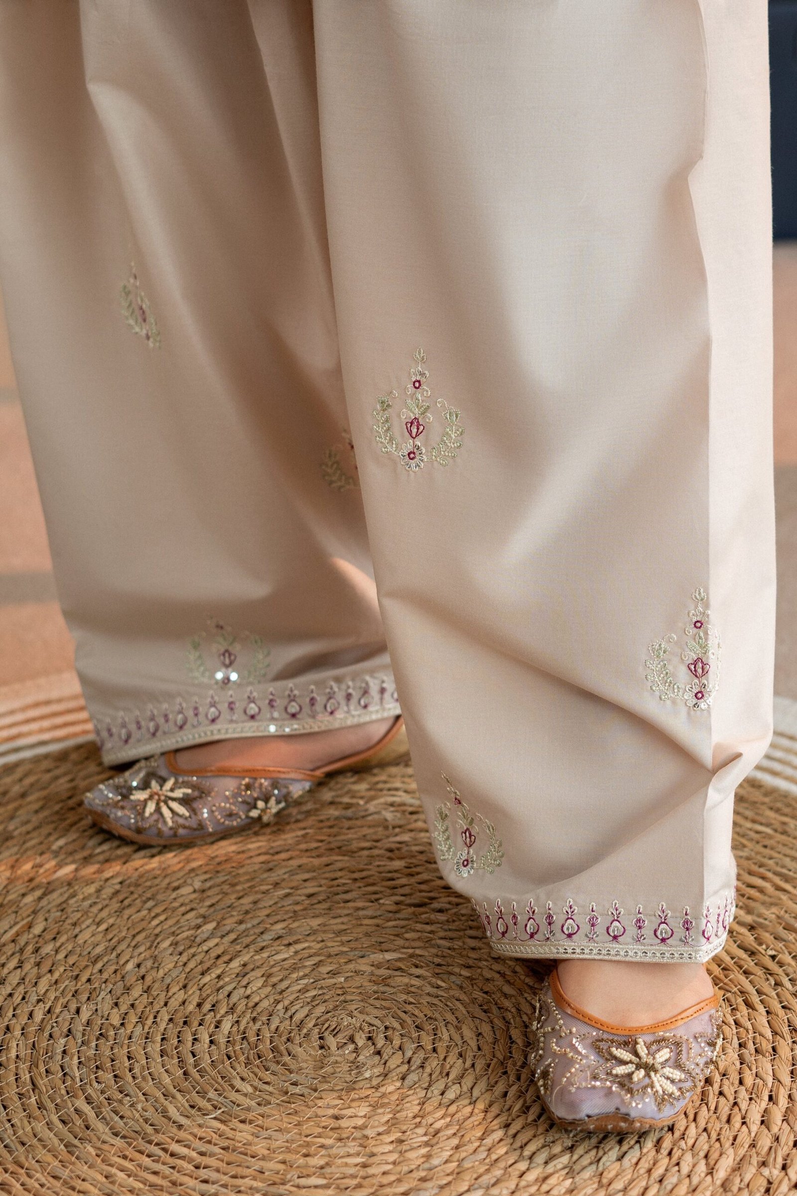 👖 ShalwarPremium Lawn · Warm Grey · Loose Farshi · Embroidered