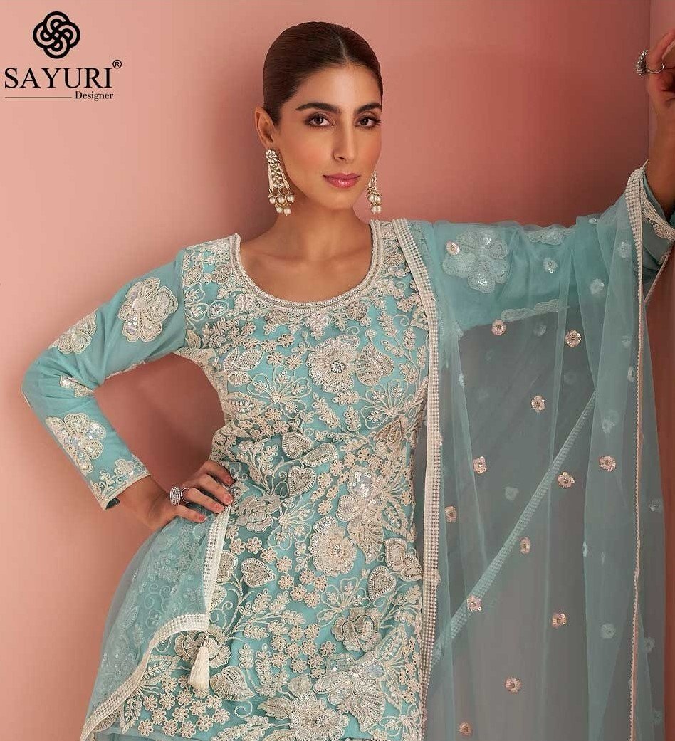 Designed for bridal functions, sangeets, receptions, and high-end parties, the Verona range exemplifies the luxury finishing that Sayuri Designer is renowned for across India. Every stitch reflects painstaking attention to detail — from the scalloped dupatta borders to the perfectly placed sequin clusters that catch light with every step.