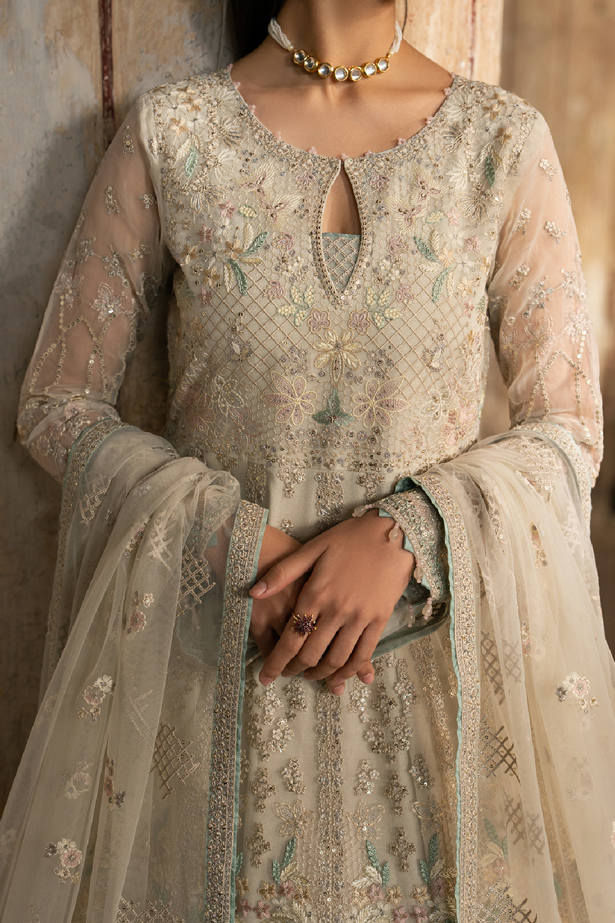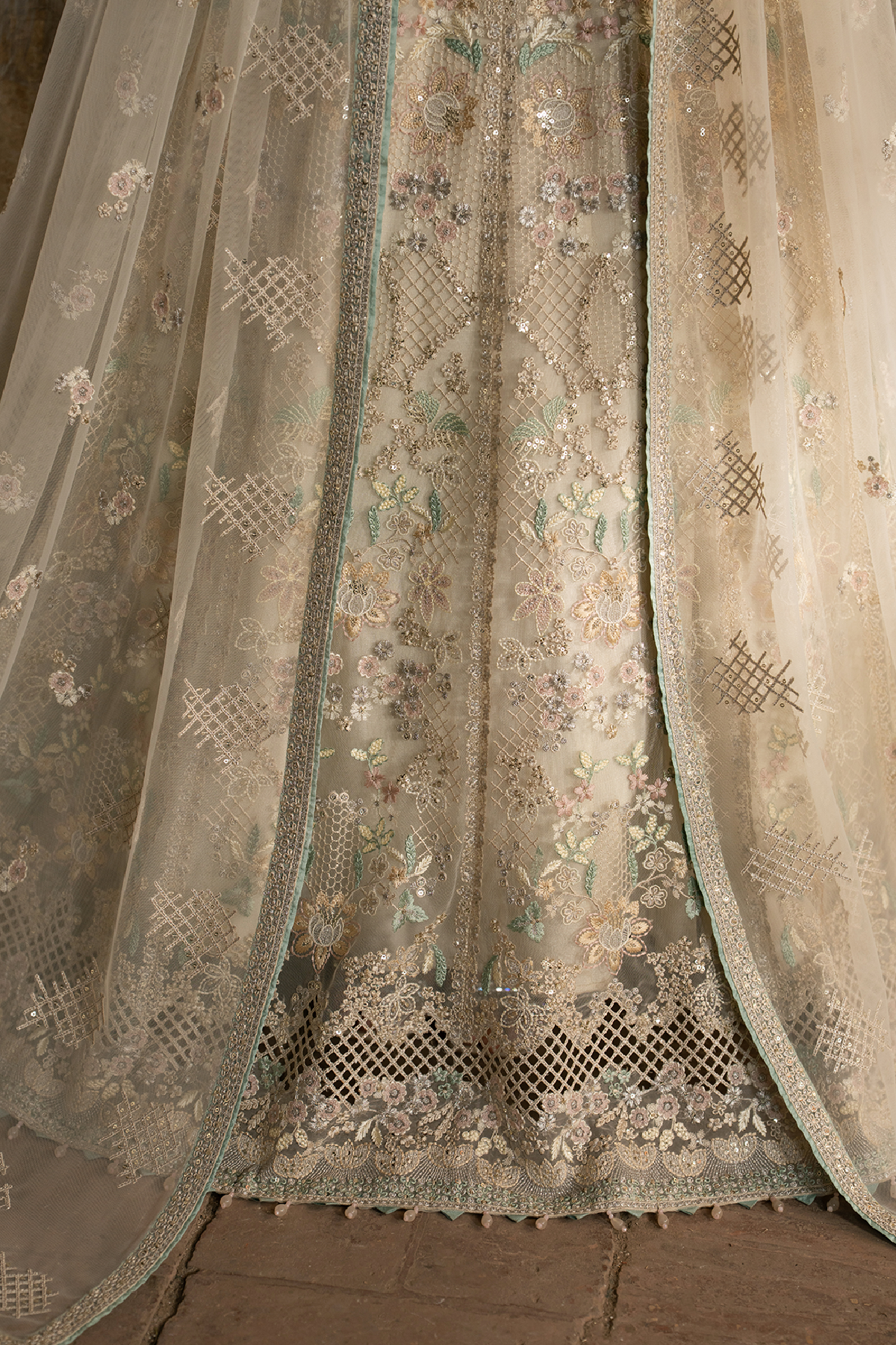This extraordinary ready-to-wear ensemble has been crafted with the finest embroidered organza and luxurious bareeze net, combining intricate artisanal embroidery with premium quality fabrics to deliver a look that is nothing short of breathtaking. From the ornate kalli detailing to the stunning embroidered dupatta, every single element of this collection has been thoughtfully designed to make you feel like royalty on your most cherished occasions.