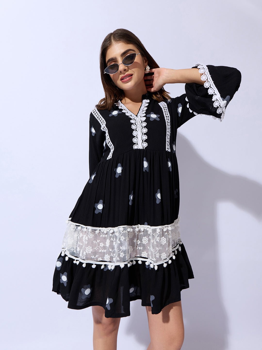 Delicate lace panels set into the print laced cotton body create a layered, dimensional surface — the detail that makes this more than a standard printed top.