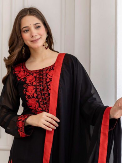 Women Embroidered Regular Kurta with Trousers & With Dupatta